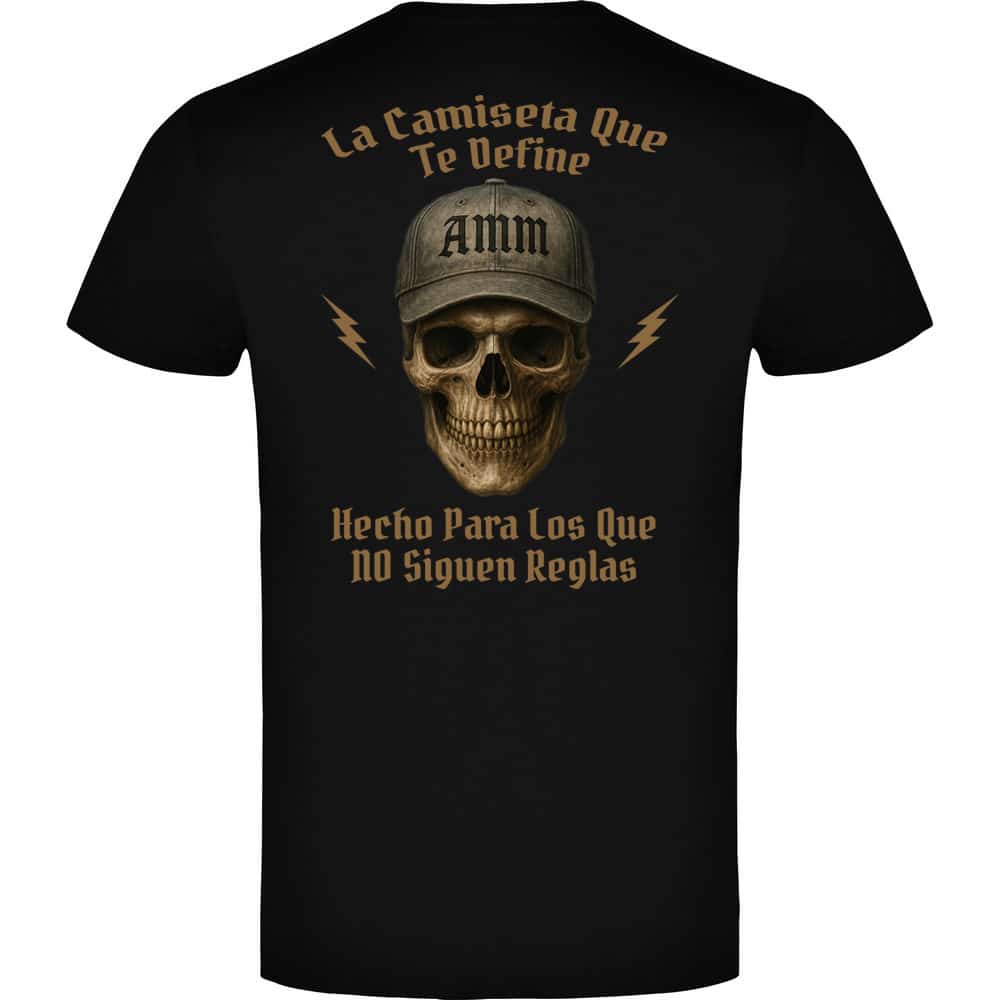 No todos están hechos para seguir las reglas. Esta camiseta de la colección AMM es un símbolo de rebeldía y autenticidad., lleva el mensaje claro: “La camiseta que te define. Hecho para los que NO siguen reglas”.